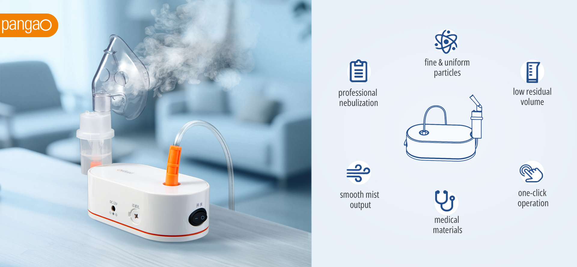 Ensures comfortable nebulization with gentle, fine particles for optimal absorption. Allows continuous operation while maintaining consistent mist quality.