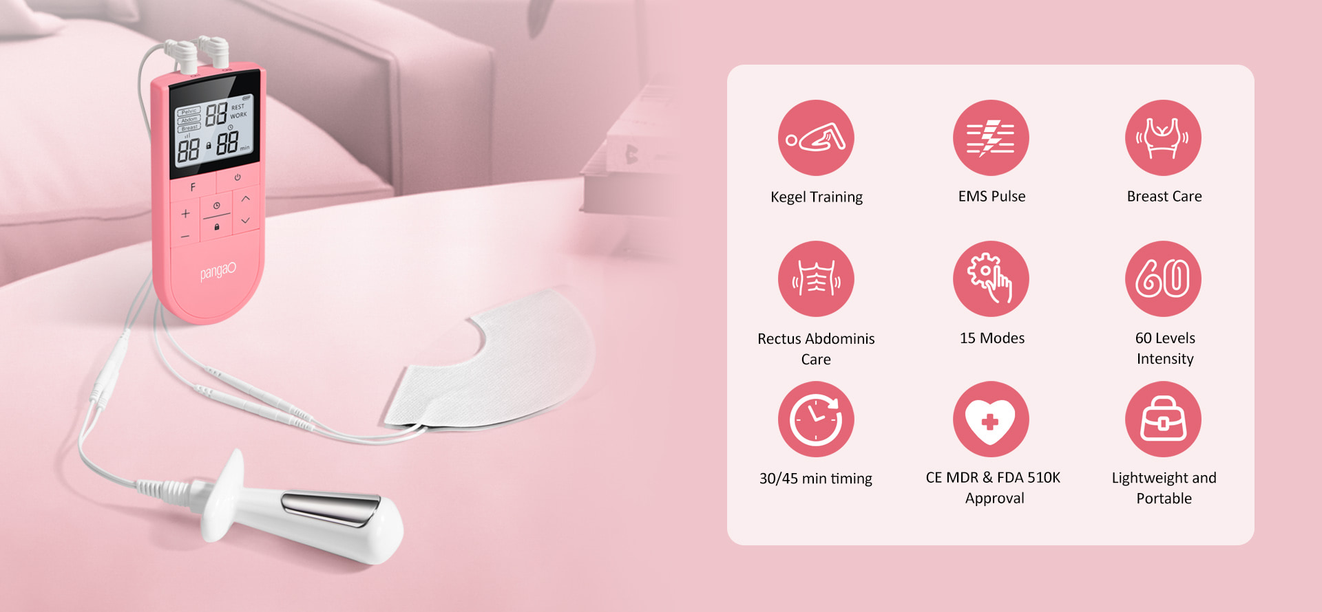 Compact and easy to use, it’s a reliable at-home companion for women to restore pelvic floor health and improve quality of life.