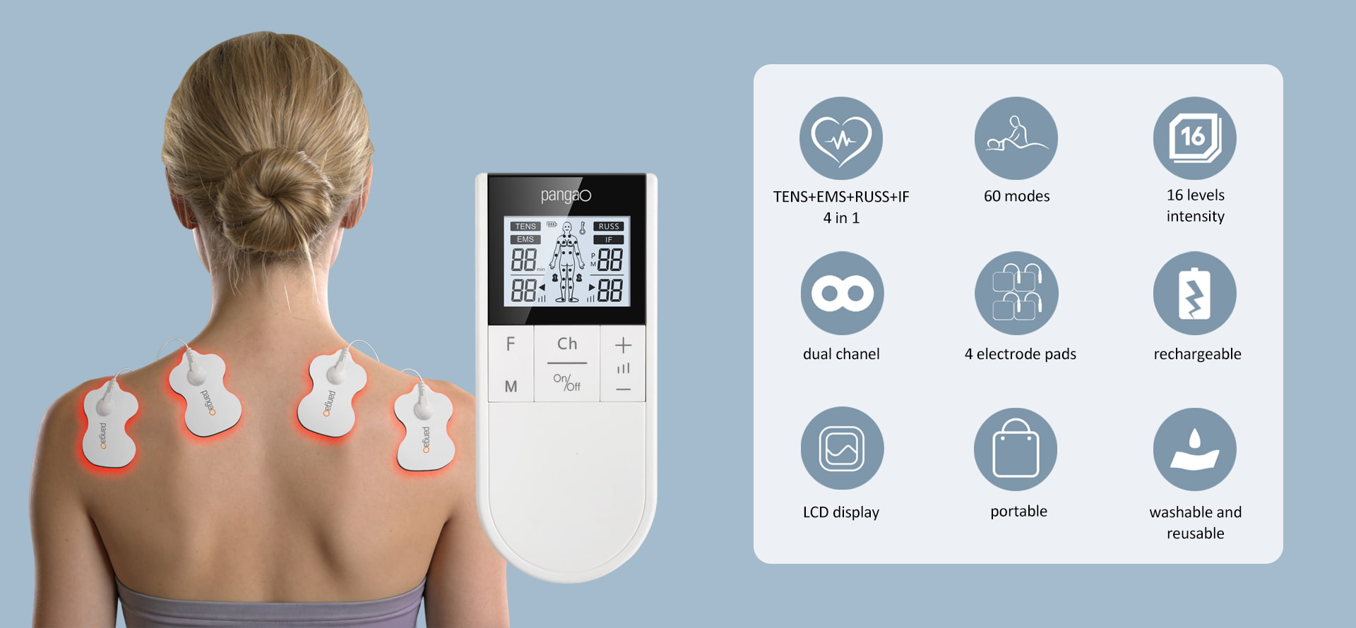 Supports independent intensity adjustment for each channel to match different pain/muscle needs, boosting therapy efficiency and flexibility for personalized at-home care.