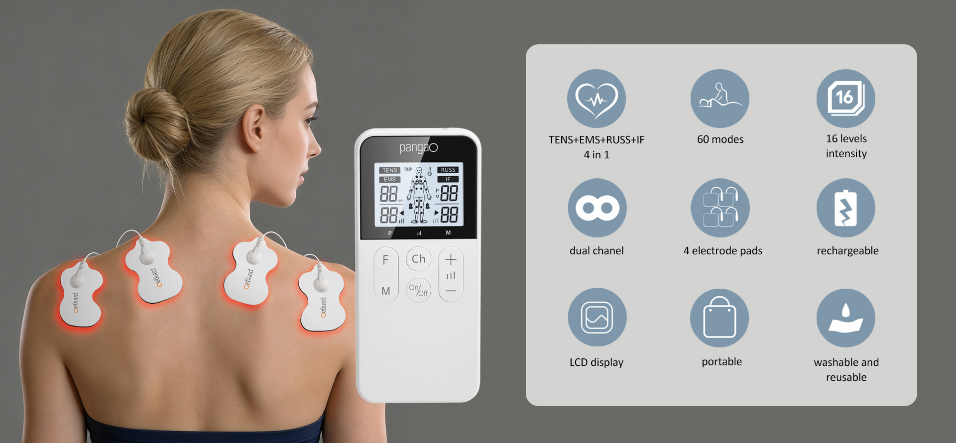 Supports independent intensity adjustment for each channel to match different pain/muscle needs, boosting therapy efficiency and flexibility for personalized at-home care.